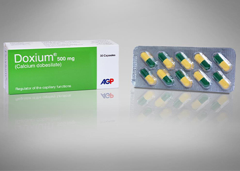 Doxium® (calcium dobesilate) is indicated in the treatment of microangiopathies (such as diabetic retinopathy), signs of chronic venous insufficiency in the lower limbs (pain, cramps, paraesthesia, oedema, stasis dermatosis) and hemorrhoidal syndrome.